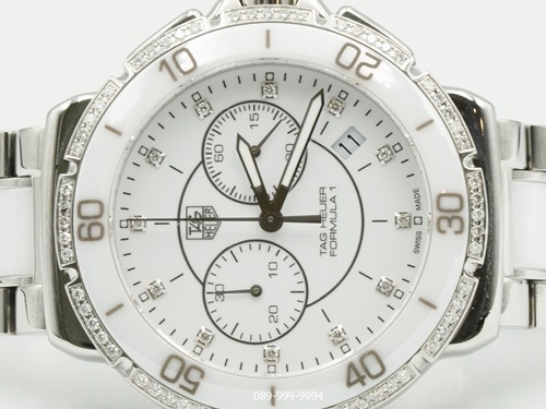 TAG-HEUER F1 หน้าขาวเพชร จับเวลา ขอบเพชร เซรามิค Man กล่องใบ Tag (no.9425)