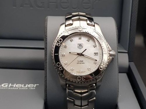 TAG-HEUER New Link หน้ามุกขาวเพชร เงาด้าน QZ ขนาด Man Size