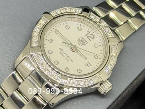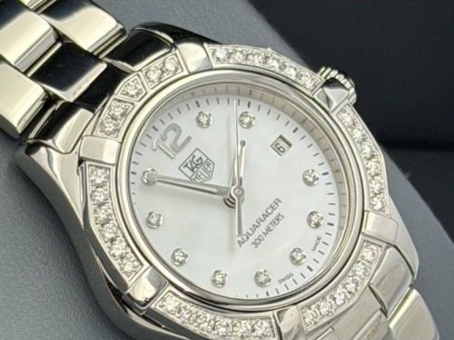 TAG-HEUER S2000 Aquaracer หน้ามุกขาวเพชร ขอบเพชร Original QZ ขนาด Lady Size กล่องใบ