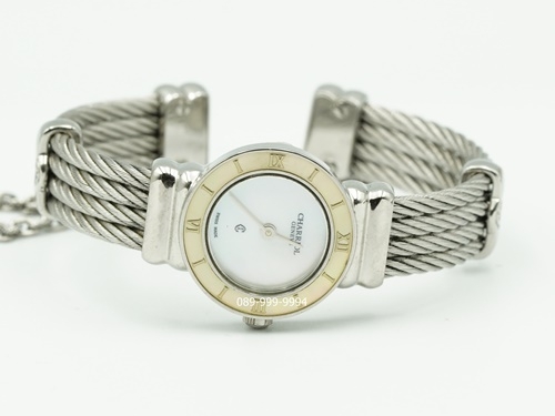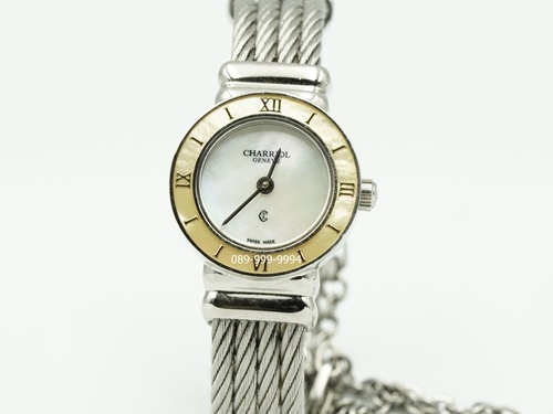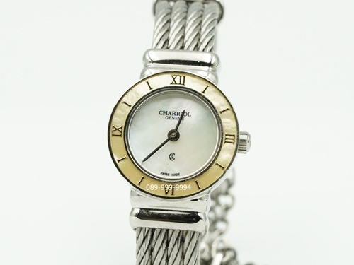 Charriol หน้ามุกขาว ขอบมุก สลิงโซ่เงิน QZ ขนาด Lady Size (no.M1705)