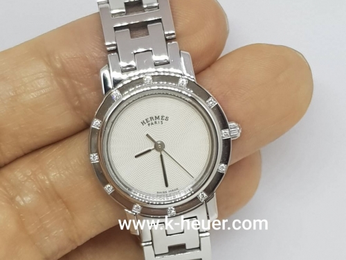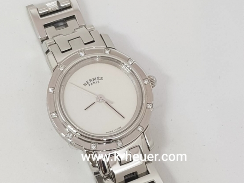 HERMES Clipper Nakure หน้าเปลือกมุกขาว ขอบเพชร ขนาด Lady Size (no.M1857) 37,000