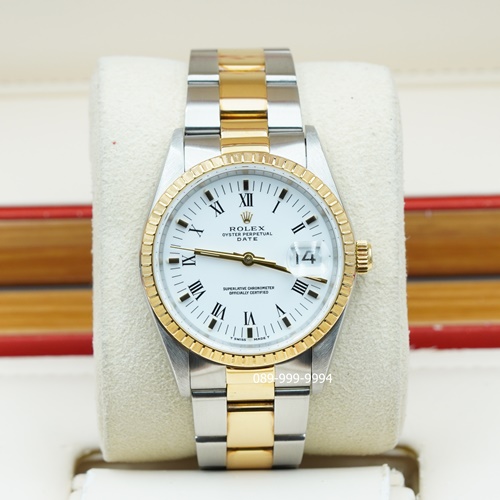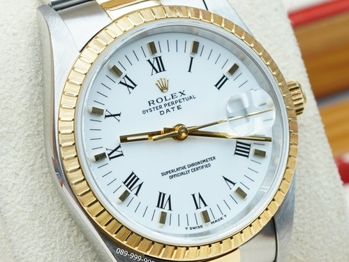 ROLEX Date หน้าขาว โรมัน 18K Twotone ขนาด Medium size (no.M2205)