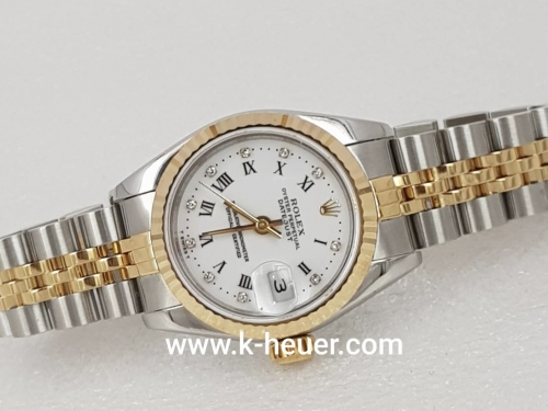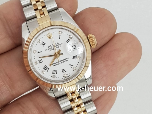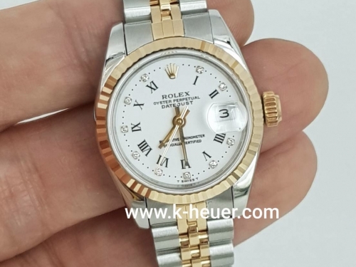 Rolex Datejust หน้าขาวโรมันเพชร Auto 18K Twotone Lady กล่องใบRolex (no.M1871)
