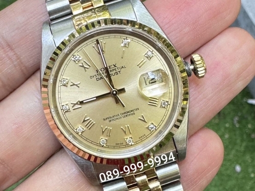 Rolex Datejust หน้าทอง โรมันเพชร 18K Twotone ขนาด Man Size กล่องใบ (no.M2237)