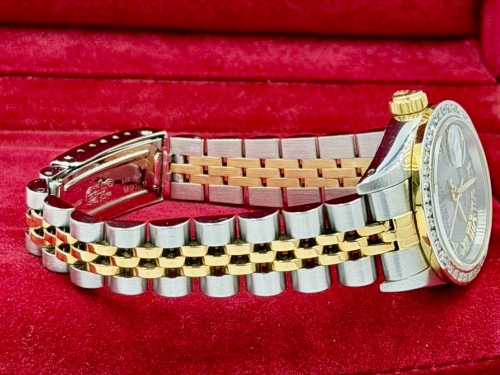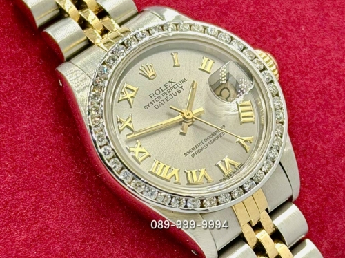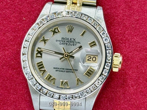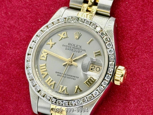 Rolex Datejust หน้าเทา โรมัน ขอบเพชร Auto 18K Twotone ขนาด Lady Size (no.M2343)