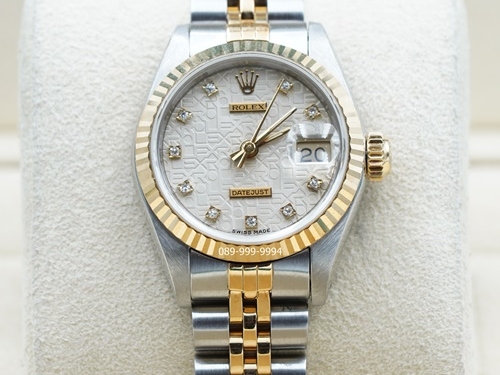 Rolex Datejust หน้าCom Silverเพชร 18K Twotone Lady กล่องใบRolex (no.M1866)
