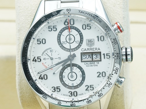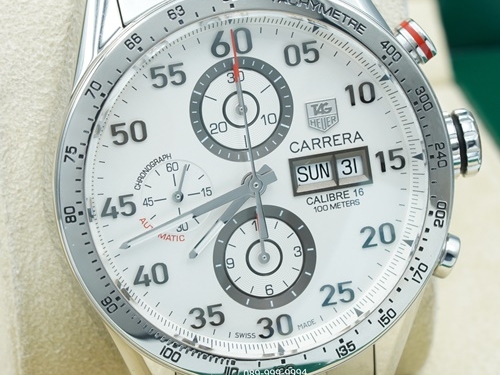 TAG HEUER Carrera Daydate หน้าขาว จับเวลา Auto calibre16 Man กล่องใบTag (no.614)