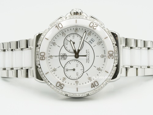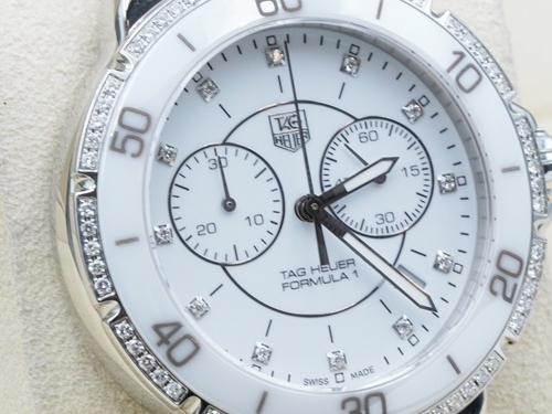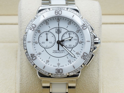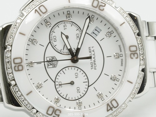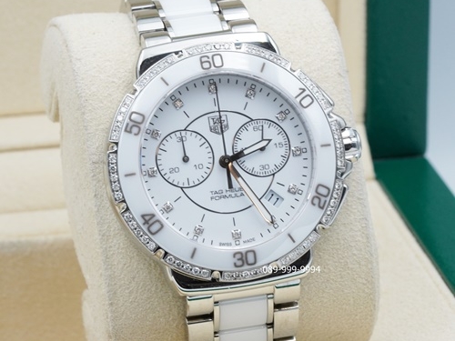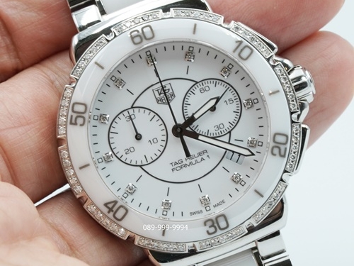 TAG-HEUER F1 หน้าขาวเพชร จับเวลา ขอบเพชร เซรามิค Man กล่องใบ Tag (no.9425)