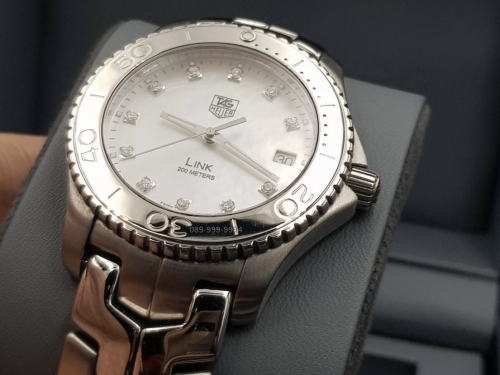 TAG-HEUER New Link หน้ามุกขาวเพชร เงาด้าน QZ ขนาด Man Size