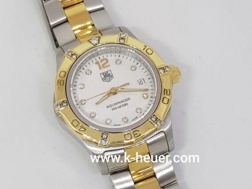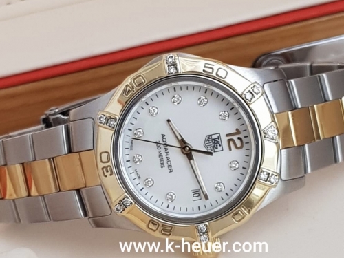 TAG-HEUER S2000 Aquaracer หน้ามุกขาวเพชร ขอบเพชร Twotone Lady กล่องและใบ (no.T909) 49,500