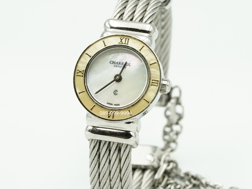 Charriol หน้ามุกขาว ขอบมุก สลิงโซ่เงิน QZ ขนาด Lady Size (no.M1705)