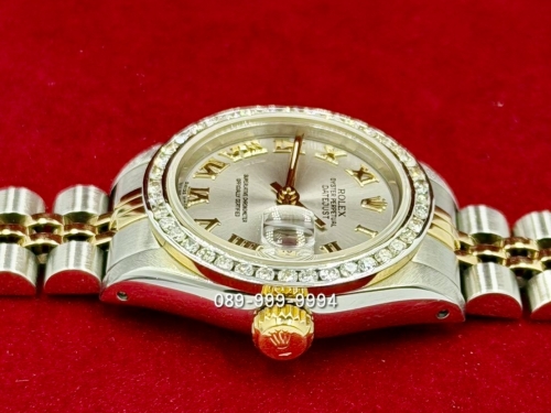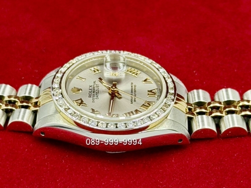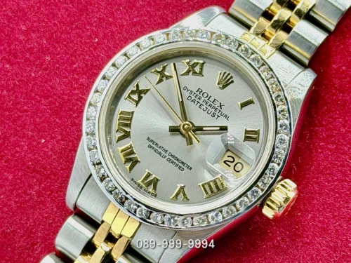 Rolex Datejust หน้าเทา โรมัน ขอบเพชร Auto 18K Twotone ขนาด Lady Size (no.M2343)